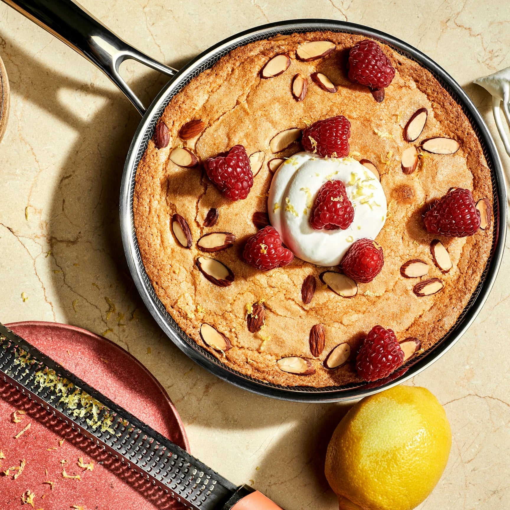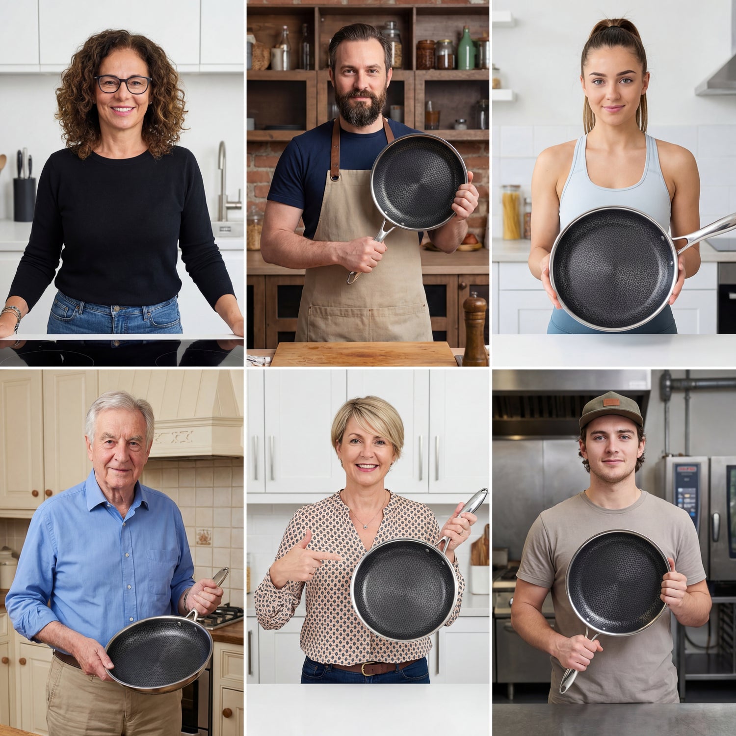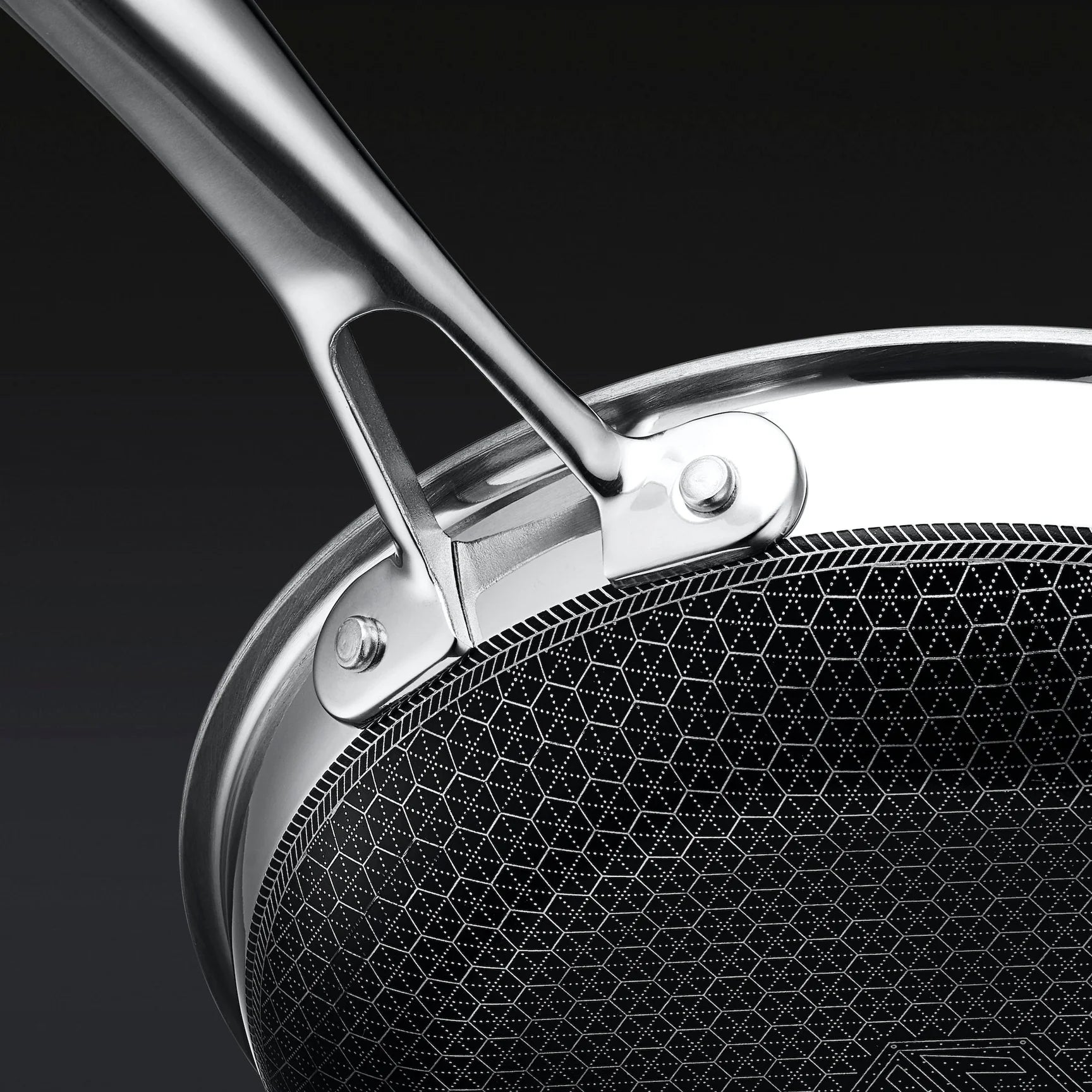 - Gestión del Calor: Gracias a su núcleo de triple capa, estas sartenes distribuyen el calor de forma ultra eficiente. Cocine siempre a fuego medio o bajo. El fuego medio en una sartén híbrida equivale al fuego alto en sartenes convencionales.