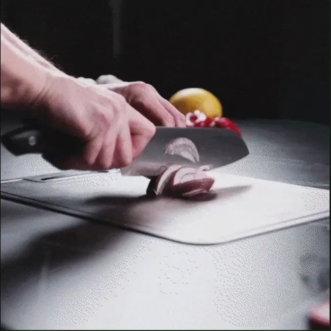 Las tablas ZenTitanium están fabricadas con titanio médico de alta calidad, reconocido por su excepcional durabilidad y propiedades higiénicas. A diferencia de la madera o el plástico,el titanio no alberga bacterias, no absorbe olores, no se degrada ni emite BPA con el uso.También es más suave con los cuchillos en comparación con el vidrio, la piedra o el acero, lo que garantiza que las hojas se mantengan más afiladas durante tanto tiempo como lo harían en la madera.