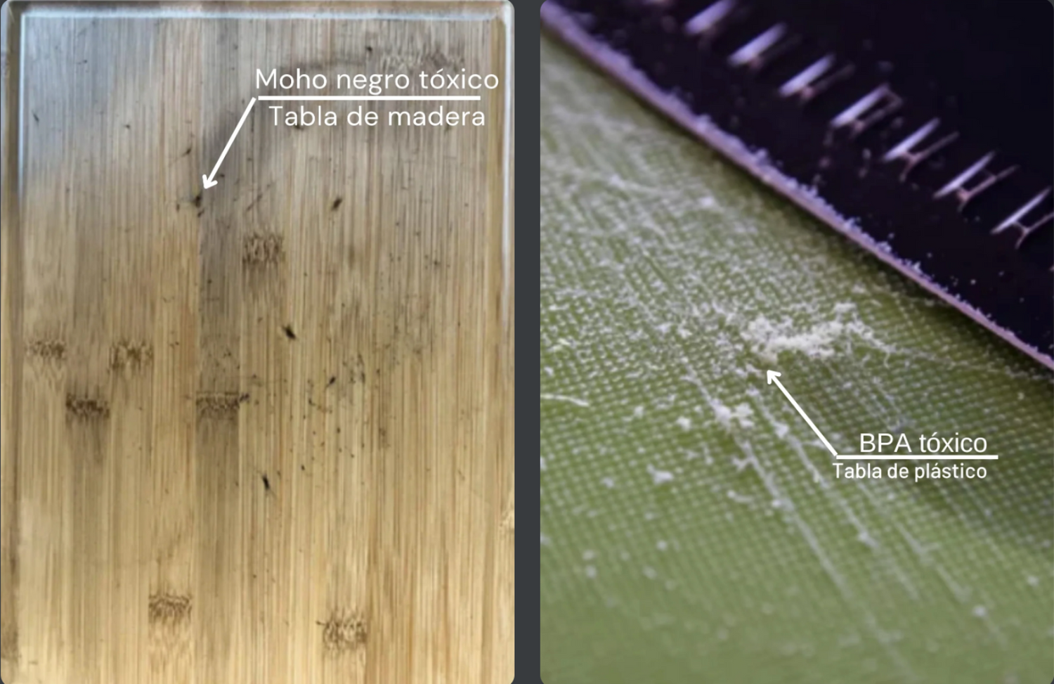 Aunque parecen naturales, son porosos y absorben humedad, aceites y bacterias. Con el tiempo, desarrollan moho invisible y olores persistentes, convirtiéndose en una fuente potencial de contaminación alimentaria.