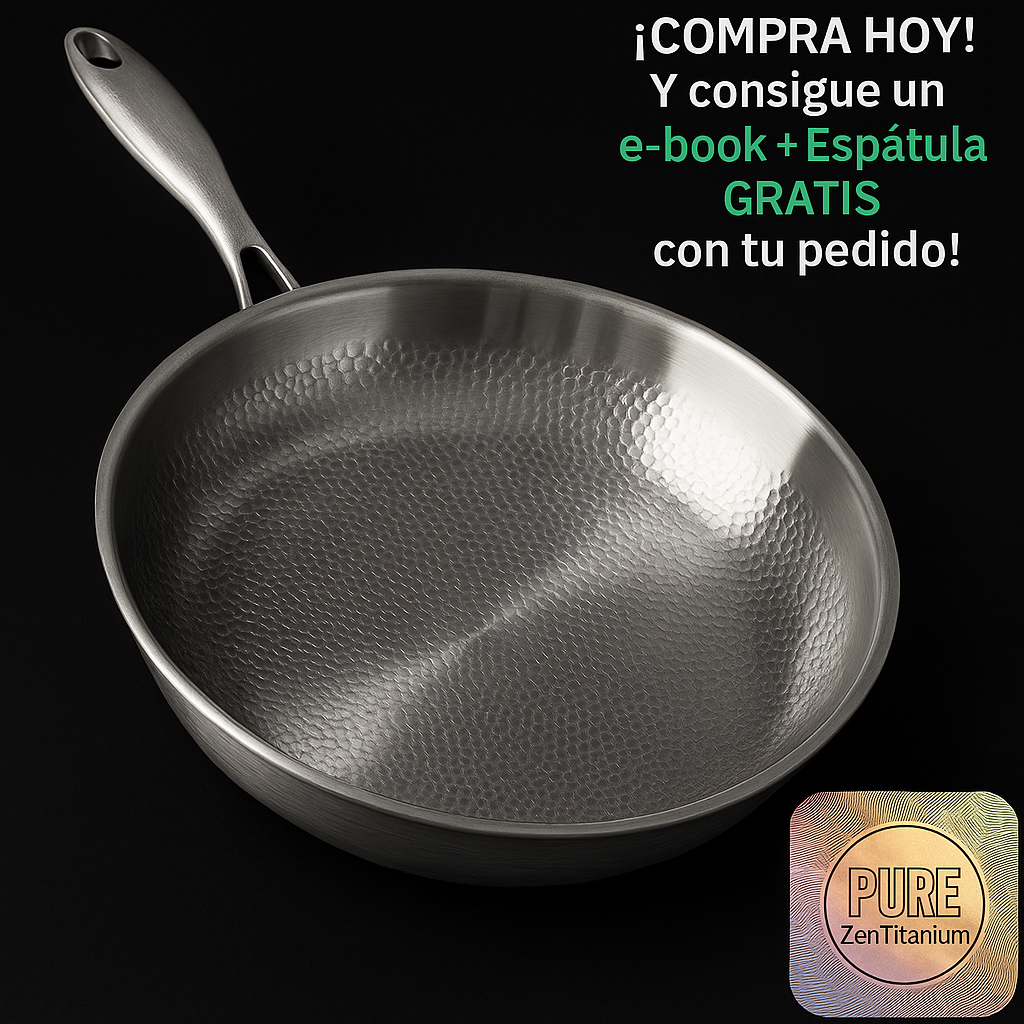 Nueva generación de utensilios de cocina: la sartén ZenTitanium Pro 2.0, elaborada con titanio 100 % puro de grado médico, un material reconocido por su pureza, durabilidad y propiedades antimicrobianas naturales.